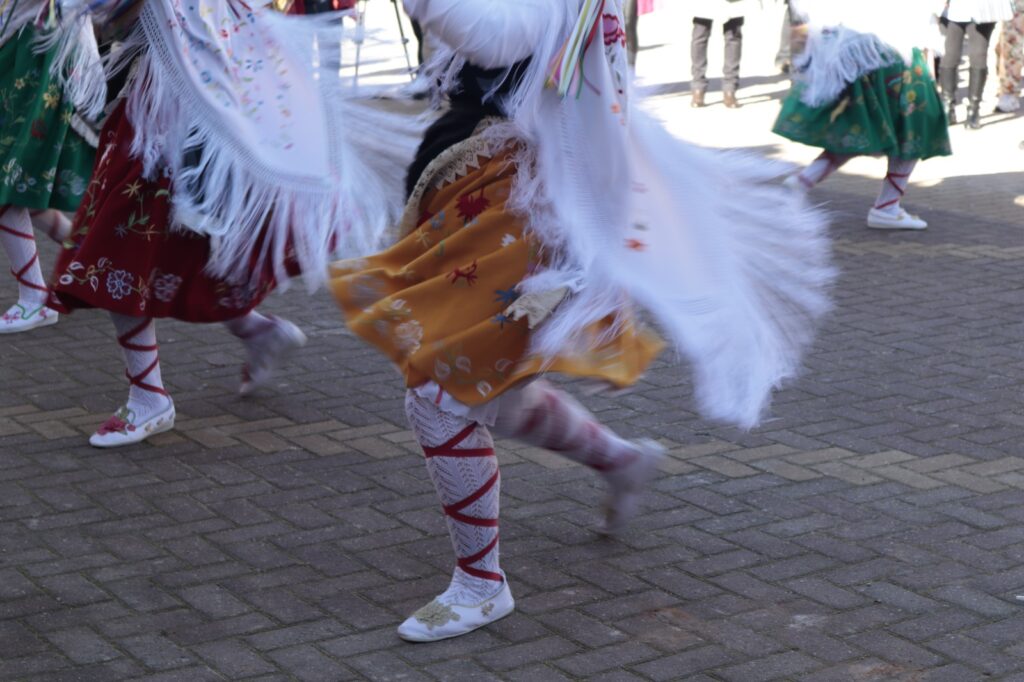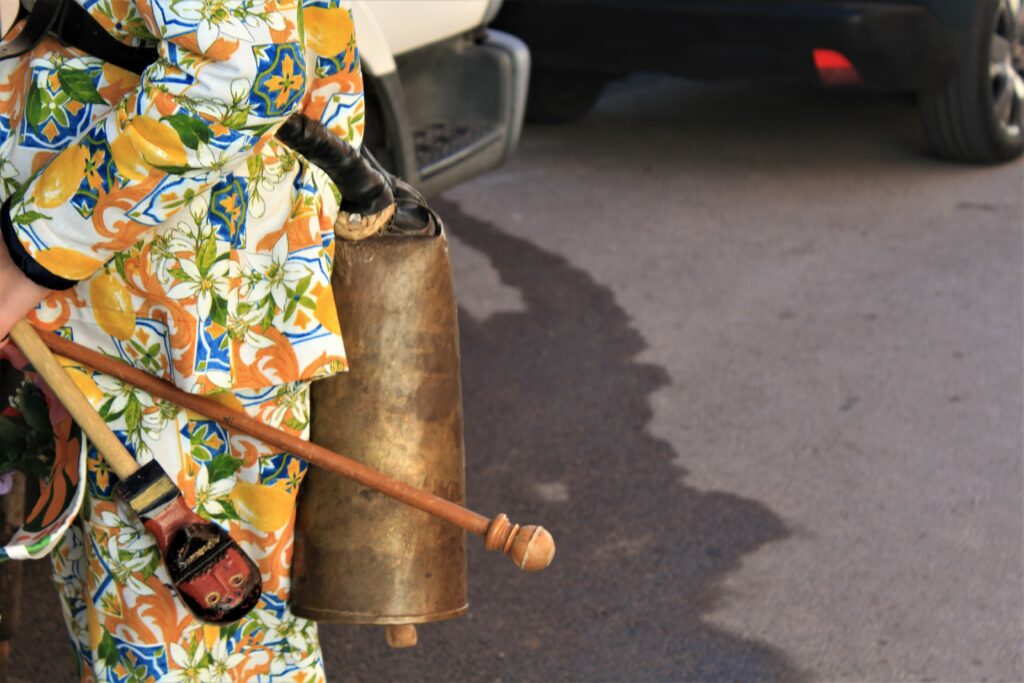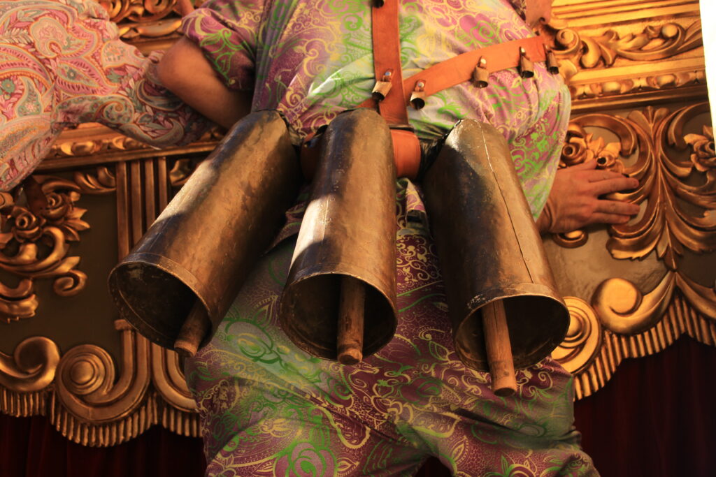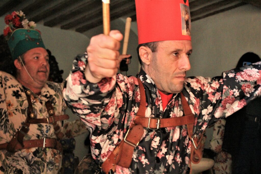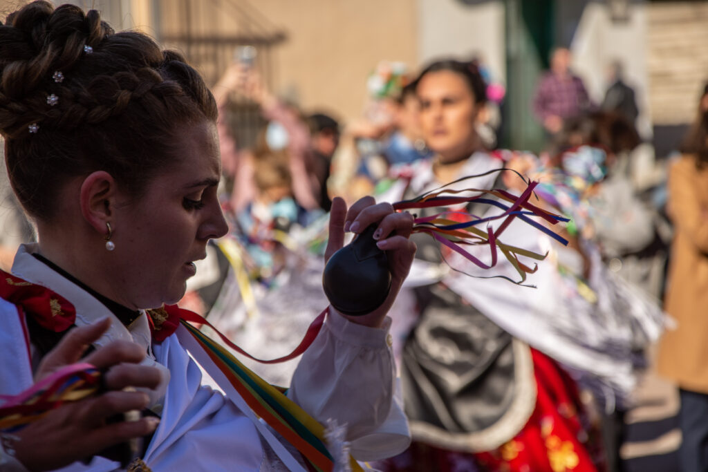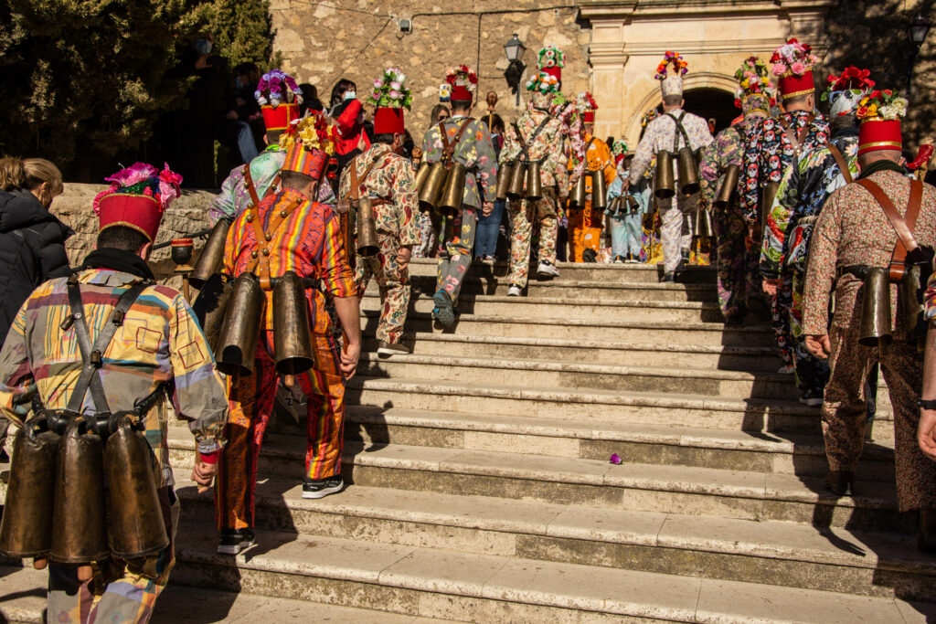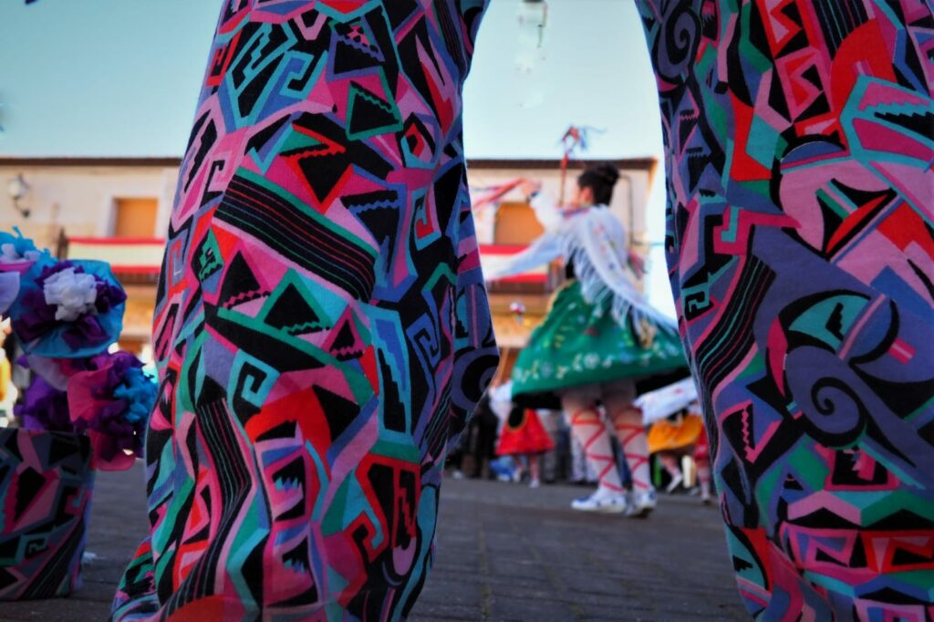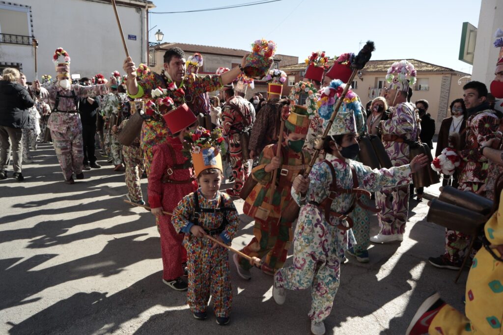 Luz, sonidos, trajes estampados, cencerros, diablos, danzantas, porras, caretas, gorros y mitras, La Candelaria, San Blas, carreras, saltos, caras cansadas, caras fervorosas.