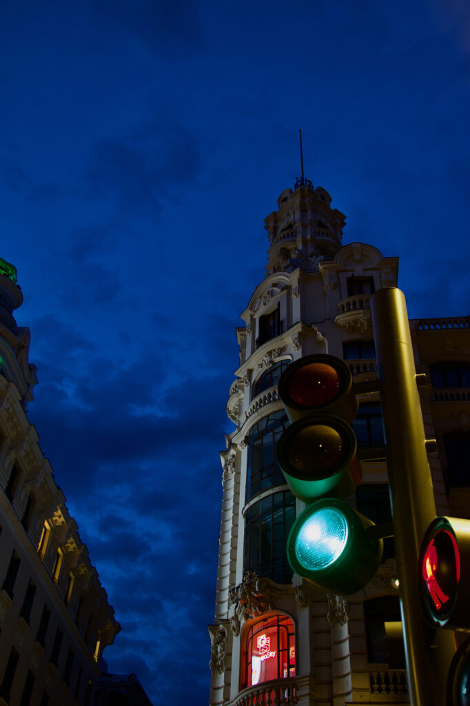 El pasado 2 de junio realizamos la salida fotográfica a la Gran Via por la noche. Esta magnifica avenida madrileña nos recibió con sus mejores galas, a pesar de tener varios edificios emblemáticos en obras y tapados por lonas.