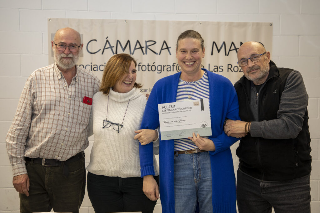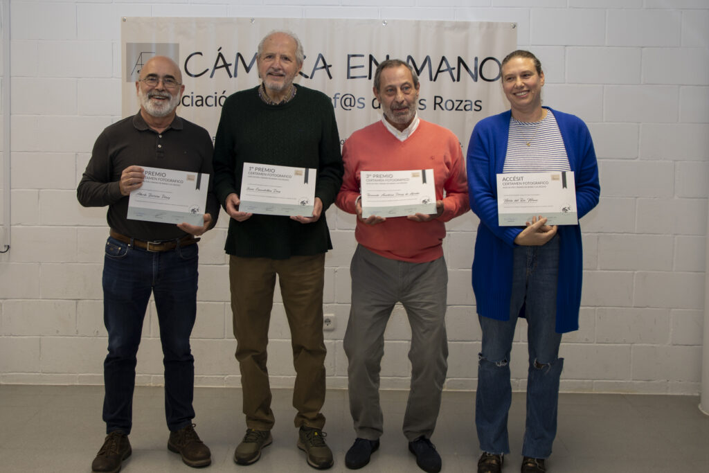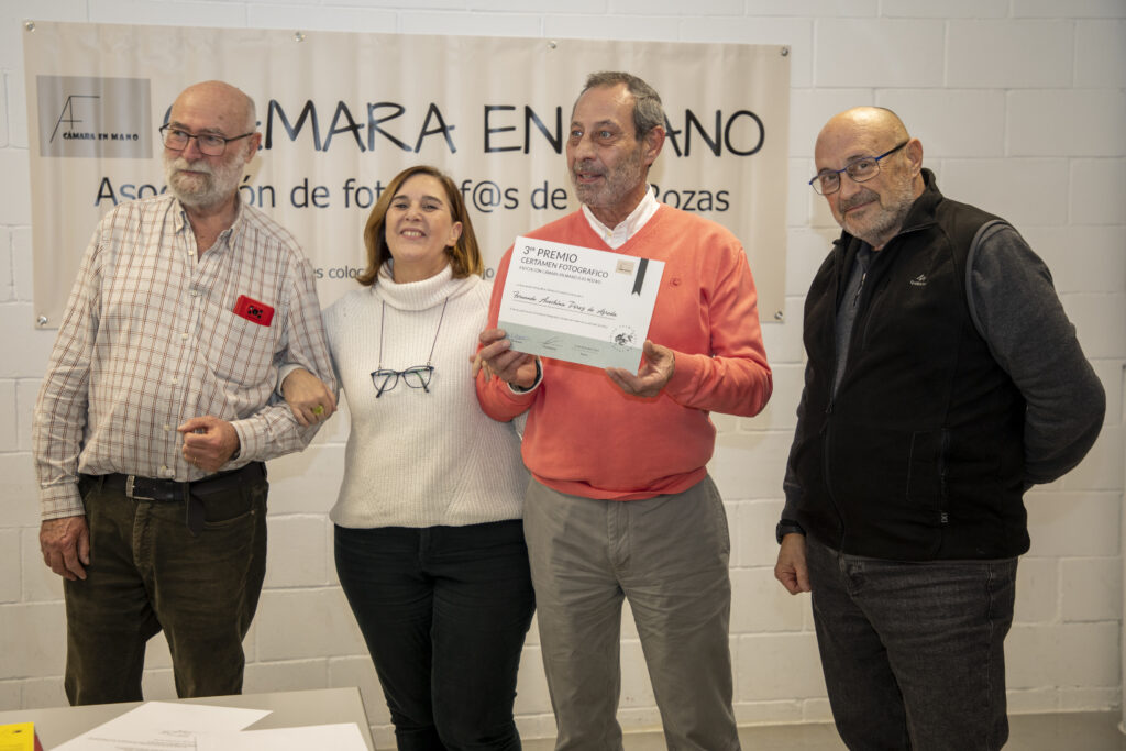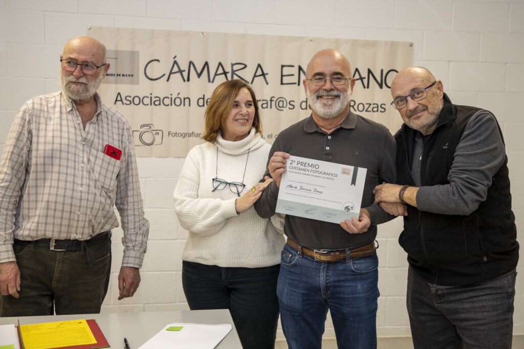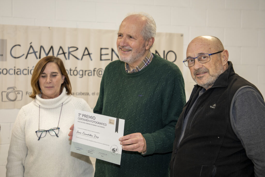El pasado 22 de diciembre se realizó la entrega de premios del 1er Certamen de fotografía Cámara en mano. El acto, dirigido por Ramón Engelmo y Chus Algueró (presidente y secretaria de la asociación), se desarrolló en la sala Circular del CC Pérez de la Riva. Acudieron al acto numerosas personas asociadas y los miembros del jurado, María Montero y Ricardo Arobes.