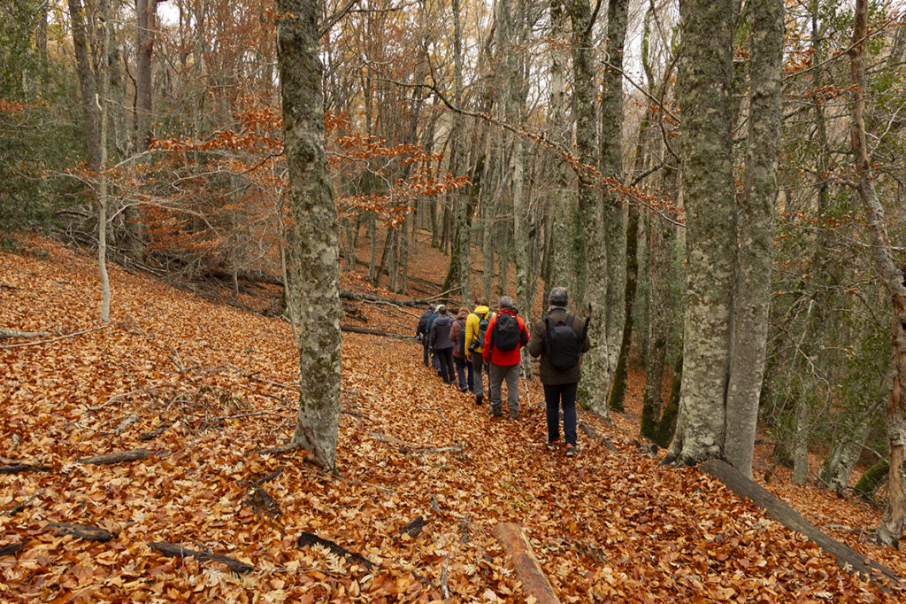 Madrugando y en diferentes coches 20 compañeros empezábamos la visita al hayedo a las 10,30h de la mañana. Un poco de fresquito, pero dinamizados por nuestra compañera de CeM y guía oficial del Hayedo Ana Vecino aprendimos a entender aspectos de geografía de la zona, como diferenciar árboles, líquenes, tipos de setas e historias que consiguieron que las 4h de paseo apenas nos impactaran y hubiéramos deseado seguir paseando. Muchas gracias Ana.
