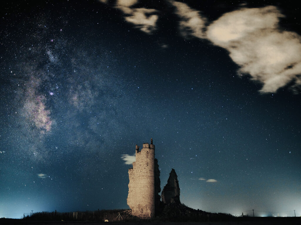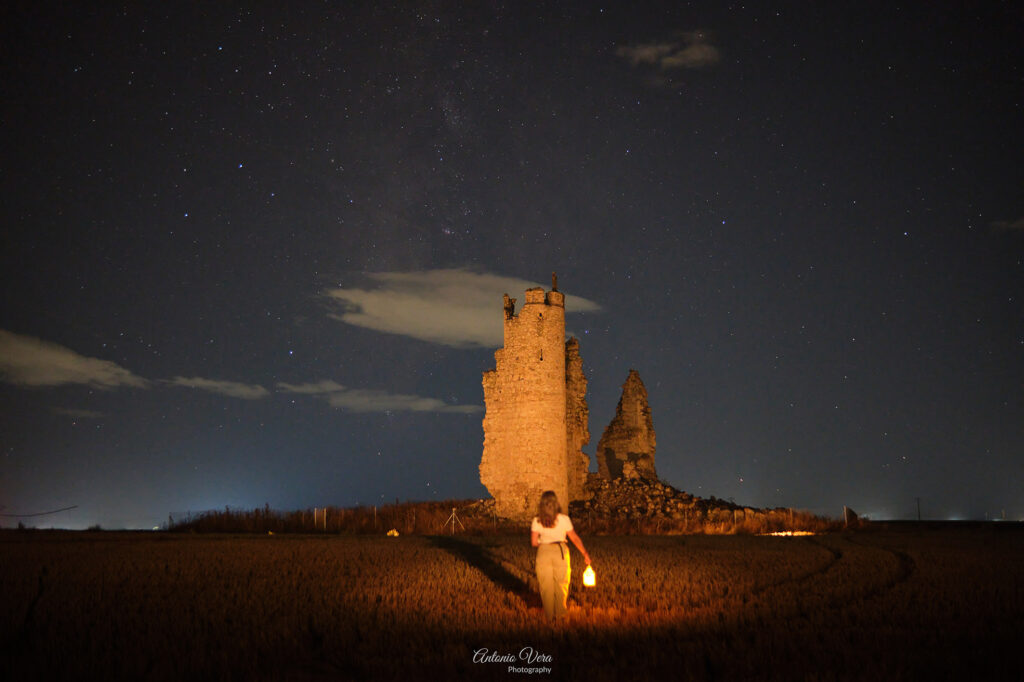 Sin embargo no fue así, la noche se fue cubriendo con un manto de estrellas que nos dejó ver la Vía Láctea en todo su esplendor. Los restos del castillo, unido a unos cielos luminosos y estrellados, han aportado mucha magia a nuestra sesión fotográfica.
