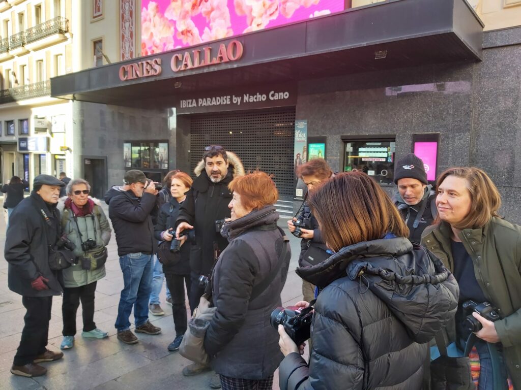 La salida fotográfica se realizó en pleno centro de Madrid: Callao, Sol, Ópera… El grupo estaba formado por participantes muy diversos: personas que nunca habían practicado la fotografía de calle y otras con más experiencia, y cada uno exploró su estilo y experimentó con libertad.