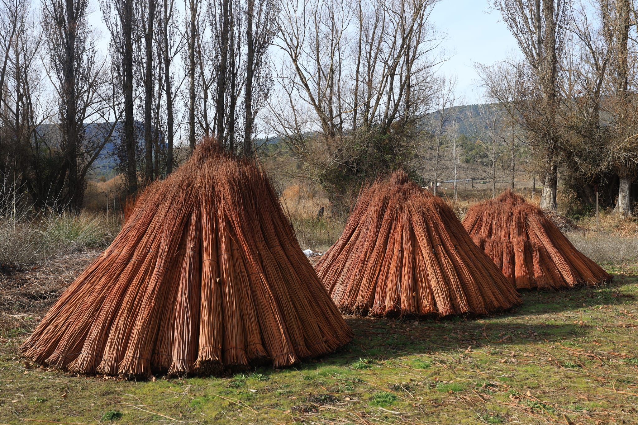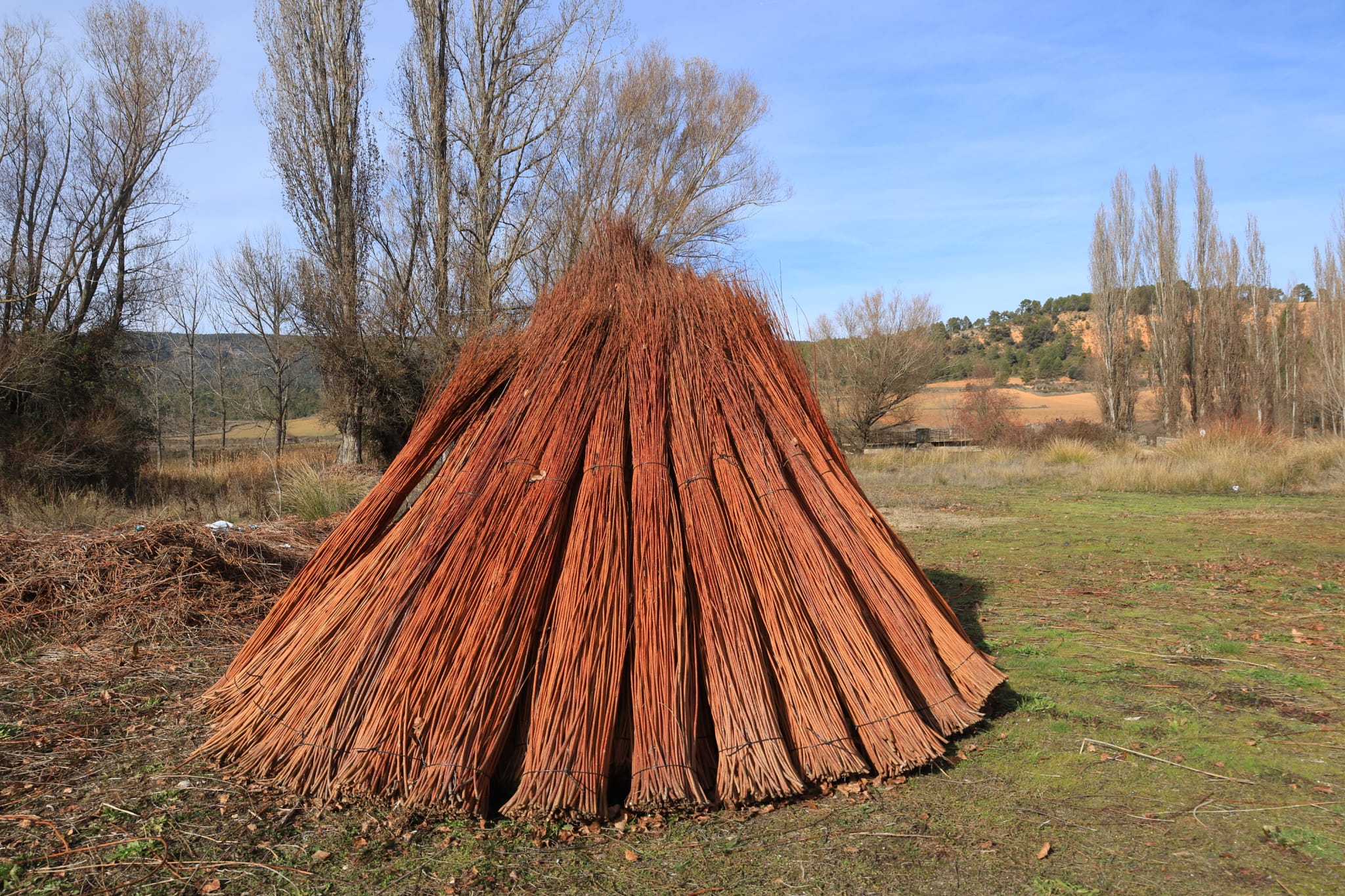 La primera parada tuvo como protagonista al mimbre, ese cultivo tan característico de la zona. Los participantes recorrieron los alrededores del pueblo, donde pudieron contemplar los hatillos de mimbres puestos a secar. Las espectaculares pirámides rojizas ofrecían una escena casi irreal, como si fuesen “hoguera tras hoguera” repartidas por el paisaje. También se visitaron varias parcelas que aún conservan plantaciones de este emblemático cultivo.